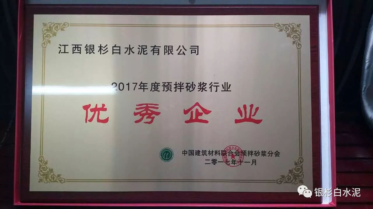 银杉荣誉 银杉公司积极响应国家号召,节能环保,引进德国先进包装设备,美化生产环境,不断进行产品创新,不断提高服务质量,为全国各地以及海外企业提供优质高端的白水泥产品。银杉公司喜获“2017年度预拌砂浆行业优秀企业”奖,为明年更好,加油!此奖项是行业对银杉白水泥产品品牌魅力、市场影响力以及公司一直以来坚持以匠心精神打造高品质产品的高度认可。 银杉工厂 银杉公司在砂浆行业的成绩有目共睹,将继续努力,不断推动行业发展,成为真正服务社会的优秀企业。